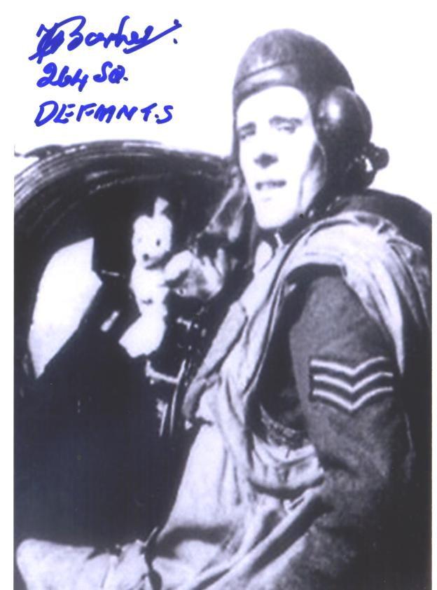 Barker joined the RAFVR in April 1939 as an Airman u/t Wop/AG and called up on 1 September 1939, he joined 264 Squadron on its reformation. Over Dunkirk Barker destroyed three Bf 109s and forced the remainder to break off the attack, the following day they succeeded in shooting down two Ju 87s and a Bf 110 followed by a He 111 on 31 May and another shared. Awarded an immediate DFM (14.6.40) which mentioned destruction of six enemy aircraft. On 24 August destroyed a Ju 88s, two days later destroyed two Do 17s and a Bf 109, but were hit during the engagement and had to bale out of the blazing Defiant. For this action awarded a Bar to the DFM (11.2.41). He destroyed a He 111 at night on 9 April 1941. By October 1941 he had scored thirteen victories and remained with 264 until 1942, and was then posted to the Middle East as an air gunnery instructor. It is believed that Barker is the highest scoring air gunner of the war.
